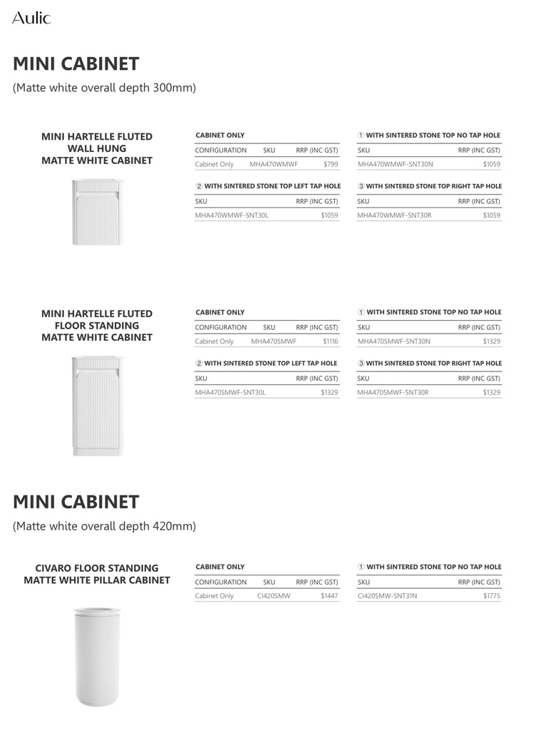 AULIC MINI HARTELLE FLUTED VANITY - MATTE WHITE WITH MOULDED TOP