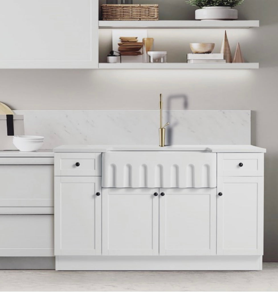 Farm House Sinks that will add the wow to your Kitchen or Laundry Space. Whether you want to recreate that farm house feel or Coastal Hamptons aesthetic these large sinks by BNK come in single or two bowl configuration with ribbed front.Also available in a curved flat sided sink only. Gloss White finish.