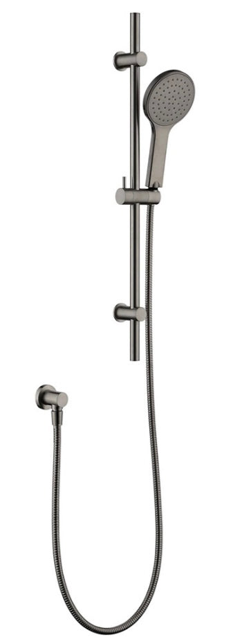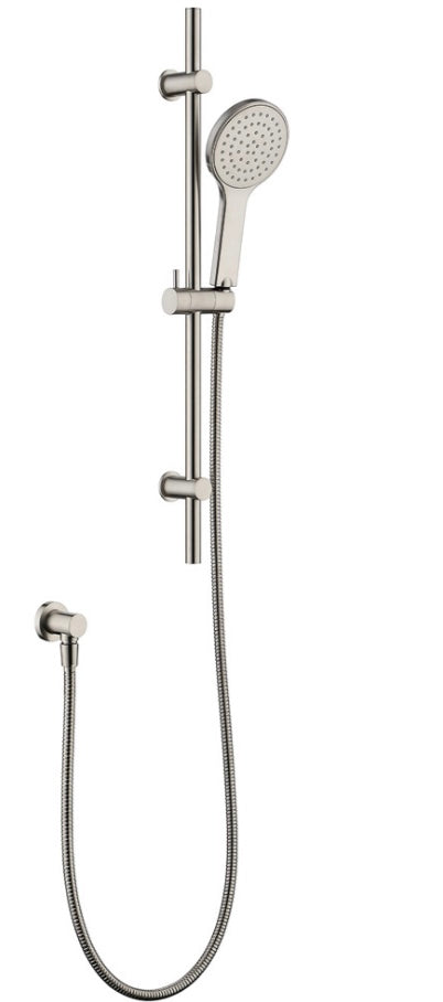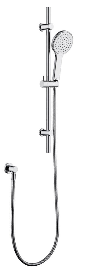 The Fienza Kaya Rail Shower has an adjustable length between wall fixings, slider to adjust height of hand shower. Long 1.5 metre stainless steel flexible hose. Made from solid brass