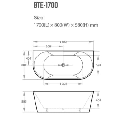 - 1700mm x 800mm x 580mm: BTE-1700