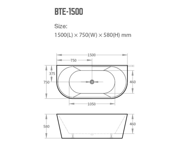 - 1500mm x 750mm x 580mm: BTE-1500