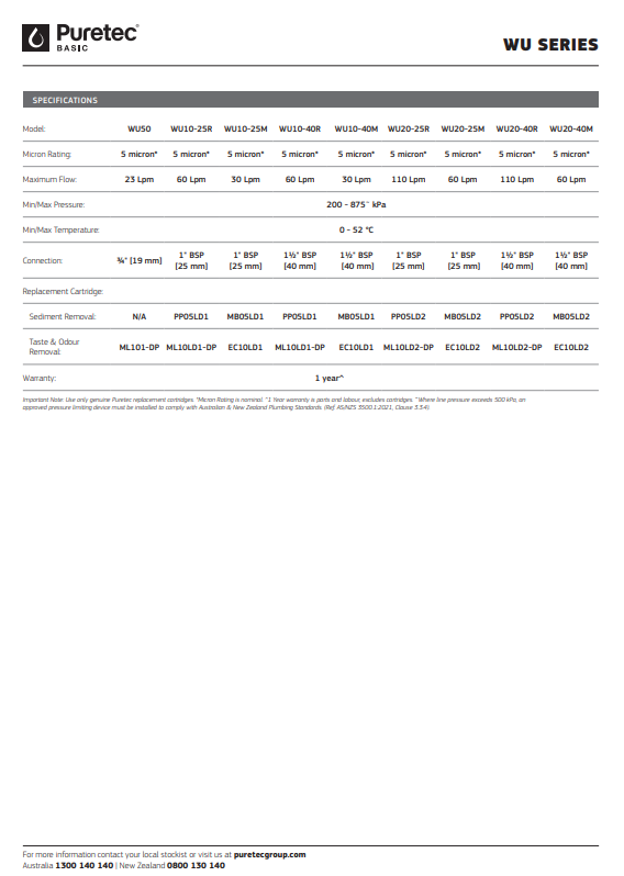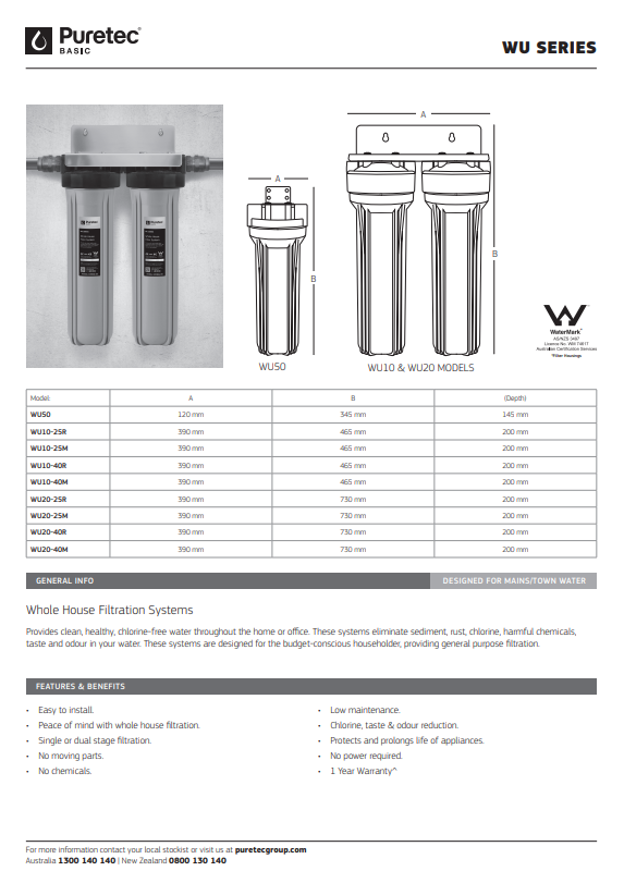 PURETEC WU20-40 WATER FILER - WHOLE HOUSE BUDGET FRIENDLY