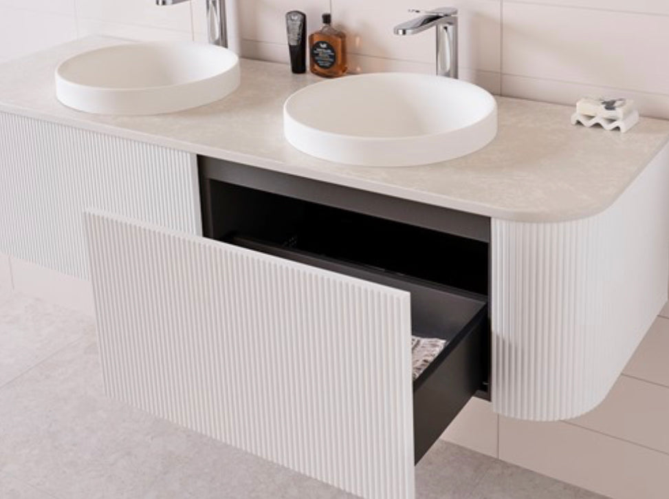 Prices include 20mm benchtop Cherry Pie Premium Solid Surface. Can upgrade to Caesar Stone for additional Cost