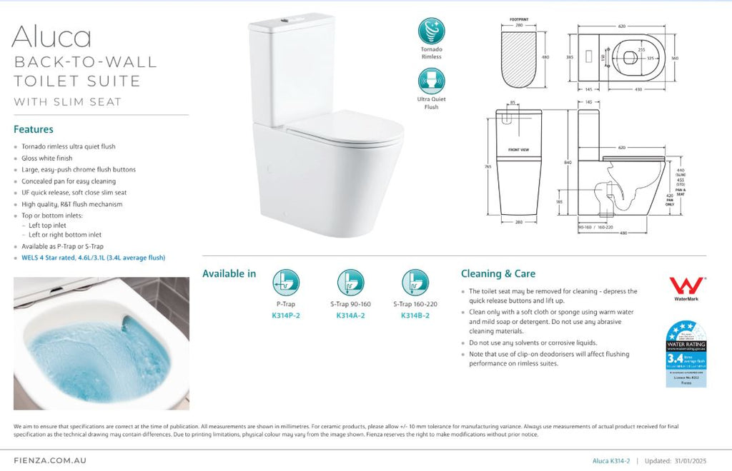 Fienza ALUCA Tornado Flush Back To Wall Toilet Suite Slim Seat